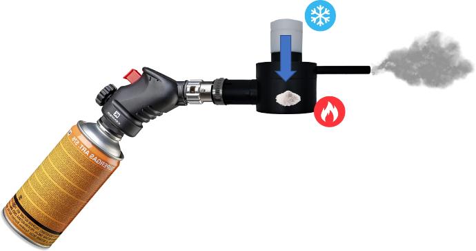 - Only use the flame of the blow torch briefly, just enough to heat the central chamber of the vaporizer and start the sublimation process. White smoke indicates that the sublimation has started. Turn the flame off immediately at this point to save gas and prevent overheating or damage to the vaporizer.
